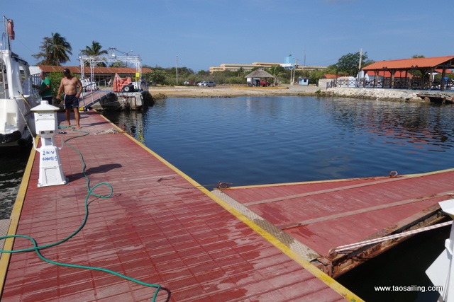 La marina Cayo Blanco, proche de l’hôtel Ancon, est entourée de mangrove et nous mouillons à l’extérieur de la petite baie pour éviter d’avoir trop de moustiques. Il ne faut que quelques minutes en annexe pour aller au ponton de la marina et faire les formalités d’entrée. 15 minutes plus tard le garde frontière arrive en barque du port de Casilda. Les formalités sont rapides… mais le garde de la marina nous demande 3 CUC par personne et par jour pour “traverser” la marina! Nous demandons des explications en précisant que des amis sont passés la semaine dernière et n’ont rien payé… le garde ne se démonte pas et nous annonce très sérieusement que ce n’est applicable qu’à partir d’aujourd’hui!!! Philippe lui demande de nous montrer un document officiel qui indiquerait l’existence de ce droit de passage… il nous perd dans de longues explications que nous ne cherchons pas à comprendre et tout est oublié! ![]()
