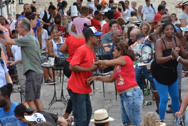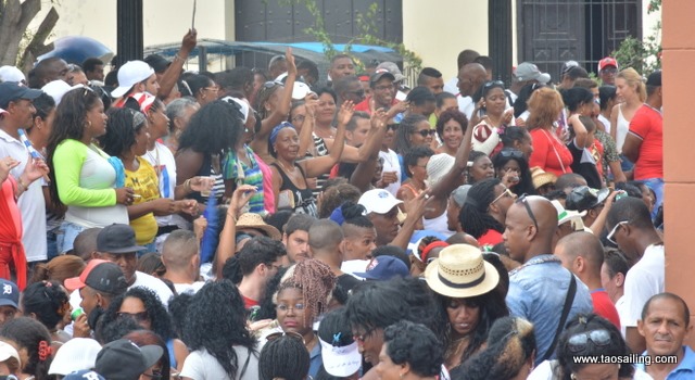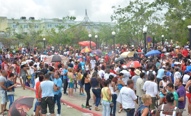 qui est déjà rassemblée sur la Plaza Cespedes où le vacarme de la musique pulsée par des enceintes géantes nous empêche de se parler. L’ambiance est à la fête.