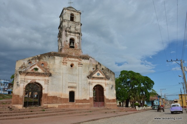 Nous retrouvons un peu d’énergie et reprenons notre marche dans les rues de Trinidad à l’écart du centre touristique pour y découvrir la façade d’une église, à se demander comment elle arrive à tenir.