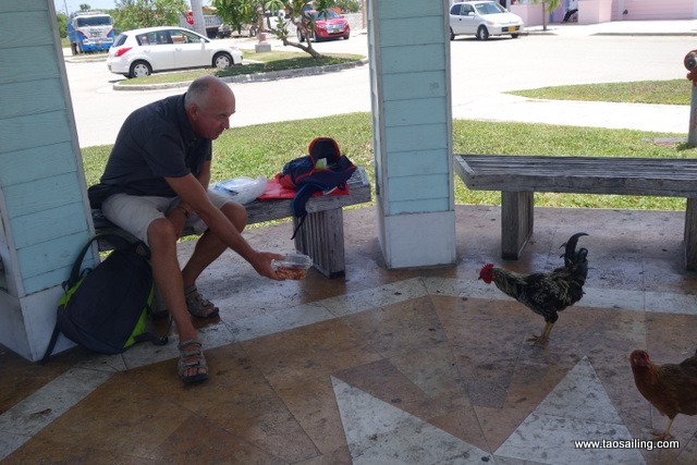 Vu les prix locaux, nous achetons le minimum de ravitaillement. Nous nous laissons aussi tentés par des “take away” que nous mangeons sur le parking du supermarché en compagnie des poules.