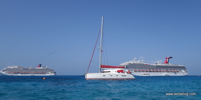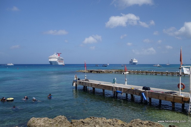 Après 24h de près serré et une belle houle hachée, nous arrivons au port principal de Georgetown à Grand Cayman. Les formalités d’immigration, de douane et de droit de navigation sont rapides et entièrement gratuites. En plus ils mettent à notre disposition des corps morts gratuits.