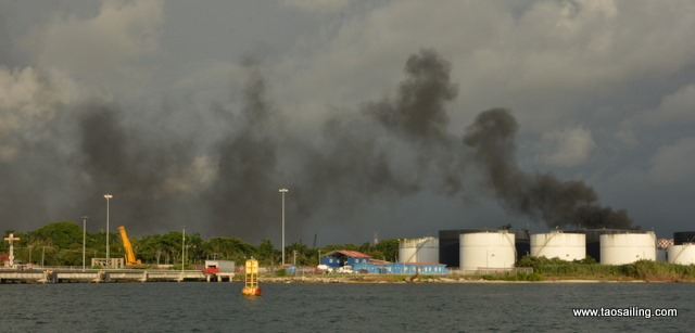 De Portobelo nous nous rendons directement à Colon qui est à quelques heures de navigation. Nous mouillons face au Club Nautico au milieu de nappes de gasoil!.