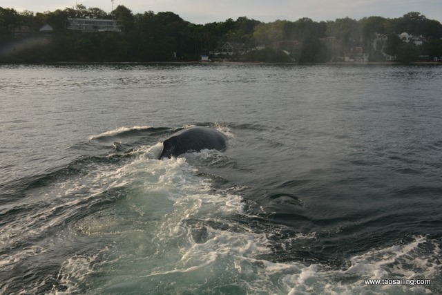 L’une d’elle est curieuse et fait surface à moins d’un mètre de notre étrave. Quel remous!