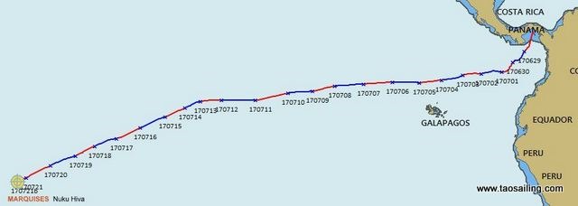 La traversée à été plutôt tranquille et malgré la forte houle le pilote automatique n’a jamais perdu le cap. Le vent était capricieux et chaque jour nous chargions une météo marine avec vents, vagues et courants afin d’ajuster le cap pour optimiser la route et notre vitesse. Cela nous a permis de faire en moyenne plus de 170 miles par jour, avec même des jours à près de 250 miles!