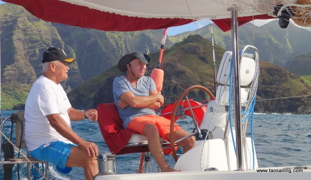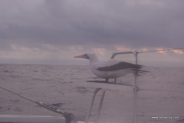 De temps en temps un oiseau des mer se repose à l’avant de Tao.