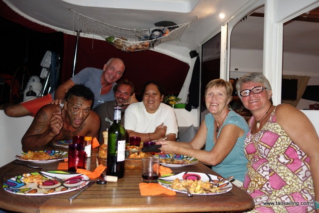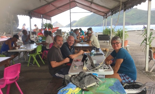 C’est notre “camp de base” pour la connexion Internet, les excellents repas de poisson cru et grillades, et les discussions avec les locaux et gens de passage comme nous. Nous y retrouvons Patricia et Stefan, l’équipage de MILLY. ![]()