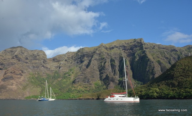 Après 4000 miles parcourus en 23 jours nous atterrissons aux Marquise sur l’île de Nuku Hiva. Nous y retrouvons nos amis avec lesquels nous avions passés de bons moments il y a trois ans…