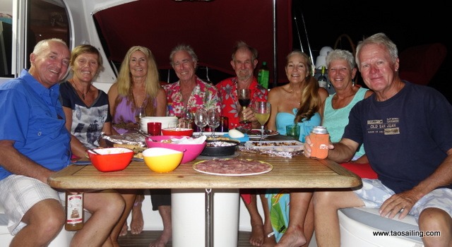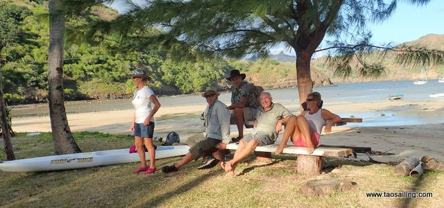 Nous ne sommes plus tout seuls au mouillage, 3 bateaux , aux pavillons Australiens et New Zélandais, posent leur ancre à proximité de Tao: “Southern Comfort”, “Off2C” et “Gone with the Wind”. Nous sympathisons rapidement à l’occasion de quelques apéritifs et travaux d’entraide. ![]()