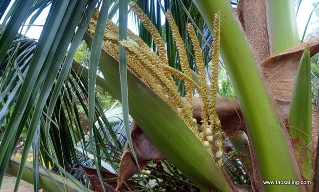 L’entretien est financé par la commune et ils n’attendent pas que les vieux arbres meurent pour les remplacés. Cela nous donne l’opportunité de voir la fleur de cocotier sur un arbre à hauteur d’homme.![]()