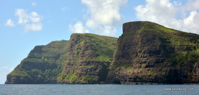 Toujours à la recherche d’endroits perdus, nous allons sur l’île inhabitée de Eiao à une cinquantaine de miles plus au nord. Le vent est de travers et la traversée est rapide et agréable.![]()