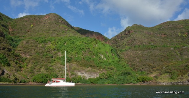 Après quelques courses et l’achat de gaz à Taiohae nous ne perdons pas de temps pour retourner sur la côte nord de Nuku Hiva avec ses baies bien protégées et pour retrouver Marina et Germain…