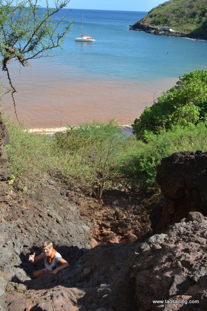 Laurent, Coraline et Temoe, nos amis du “Black Pearl” qui se posent quelques années à Nuku Hiva sont venus passer un weekend avec nous. Nous allons ensemble dans la baie de Anaho pour un moment de détente entre amis…![]()