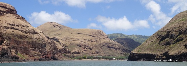 Au premier abord l’île semble désertique avec des montagnes pelées sur lesquelles des chevaux paissent tranquillement. Les vagues déferlent sur la côte rocheuse qui semble inabordable jusqu’à ce que l’on soit dans l’axe de la baie étroite de Vaipaee.![]()