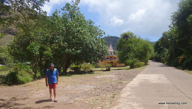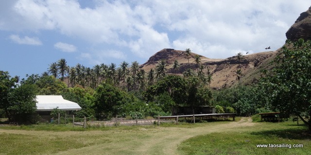 Village verdoyant et fleuri, mais où il n’est pas vraiment possible de mouiller à cause des fonds trop rocailleux et une houle constante qui s’engouffre dans l’étroite baie.![]()