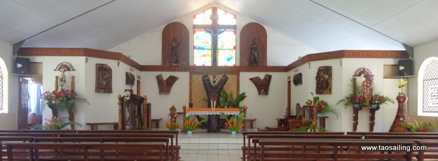 Nous jetons un rapide coup d’œil à l’intérieur de l’église qui est entretenue et décorée à tour de rôles par les habitants.![]()