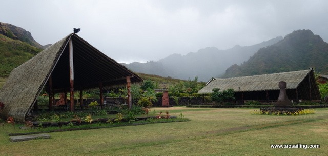 A côté se trouve un marae reconstitué et une esplanade encadrée d’abris pour les fêtes et cérémonies traditionnelles…![]()