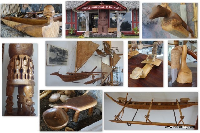 Le musée de Ua-Huka est l’une des richesses de l’ile. Le bateau “Aranui” fait escale à Vaipaee le lendemain et, en plus de l’approvisionnement pour les épiceries, déverse ses 200 passagers qui sillonnerons l’île toute la journée. Avant que le musée ne soit “pris d’assaut” par les touristes, nous nous y rendons en stop du village. Le musée vient d’être relocalisé sur le plateau aride près de l’aéroport.![]()