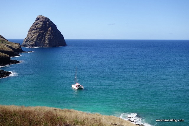 L’entrée de la baie n’étant plus bloqué par l’Aranui , nous décidons de nous rendre à Hane situé à 5miles à l’est. Nous mouillons sur un fond de sable, protégé de la houle par le “Motu Hane”.![]()