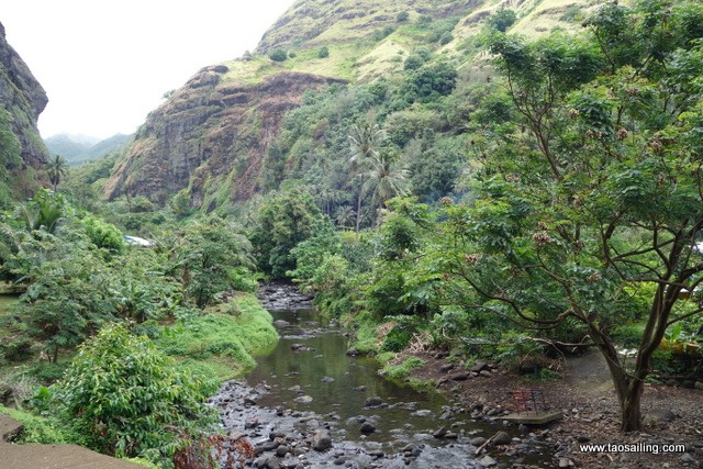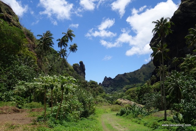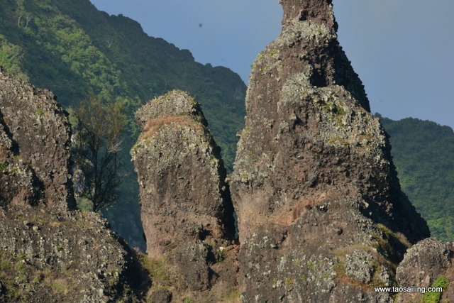 L’ile de Fatu Hiva est le résultat de 2 volcans imbriqués l’un dans l’autre. Une vallée circulaire, parfois étroite, entre le cratère du premier et le cône du second. La végétation y est particulièrement dense et verdoyante. ![]()