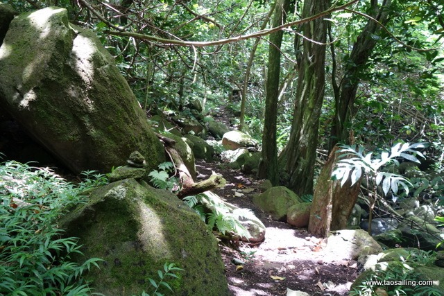 puis nous nous enfonçons dans les sous bois frais et humides qui nous rafraichissent.