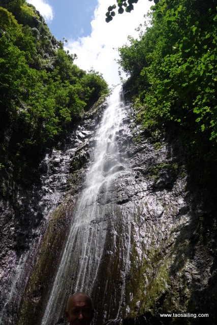 Au bout de 20 mn nous arrivons au pied de la cacade qui donne le vertige rien qu’en regardant son sommet. Malgré les pluies récentes, son débit est faible. ![]()
