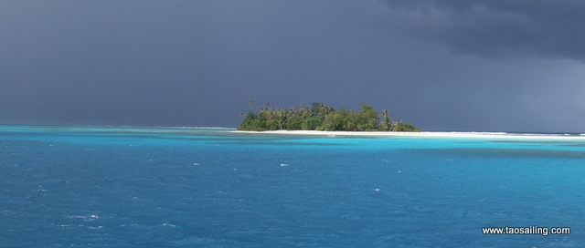 Aussitôt le moteur installé, nous remontons vers le nord à Tauna, un motu minuscule prolongé d’un banc