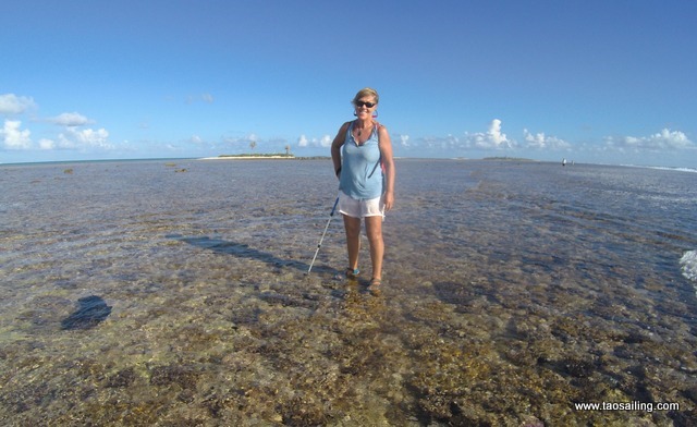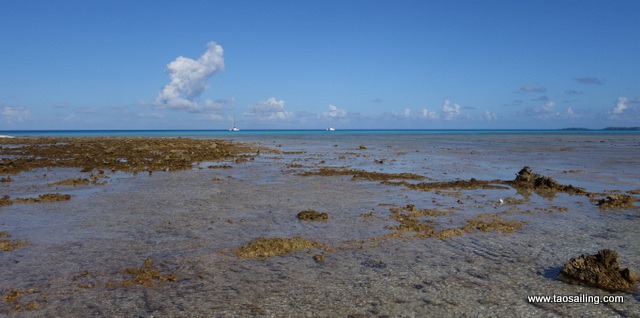 et mouillons face au platier qui entoure le lagon et le protège des vagues. C’est la marée basse ![]()