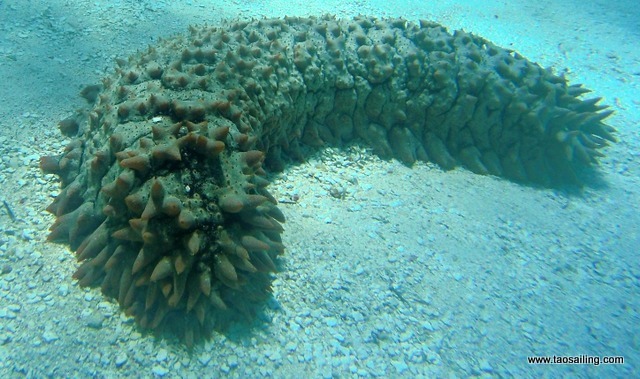 Un drôle de mollusque (concombre de mer) stagne au fond de l’eau![]()