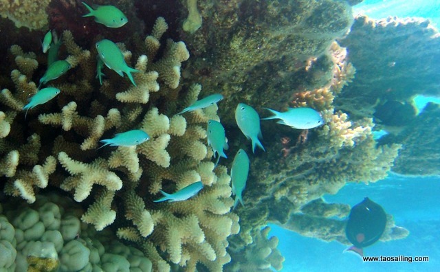 Une multitude de poissons colorés nous entourent et semblent nous ignorer![]()