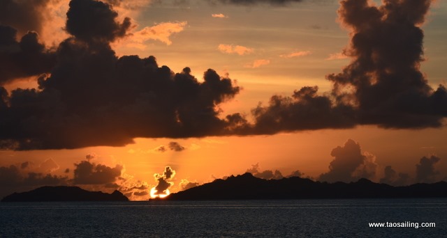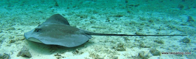 Pour la nuit nous allons vers Totegege (aéroport) mouiller sur du sable face à une cabane… à peine avons nous posé l’ancre qu’un bateau à moteur nous aborde nous expliquant qu’il est interdit de rester ici. On doit partir sur le champs sous prétexte que c’est privé