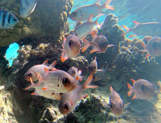 les gendarmes aux gros yeux, moins peureux car habitués à être nourris par les plongeurs s’approchent de plus près,![]()