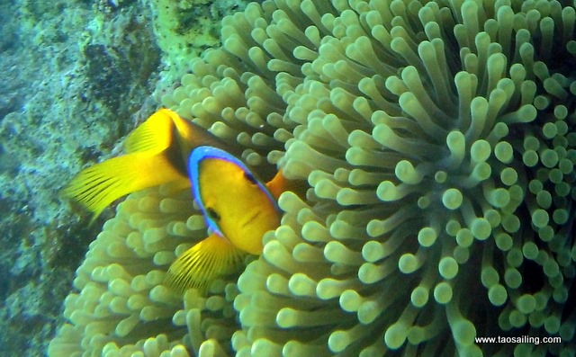Les fonds sont très clairs, les coraux sont tapissés d’anémones dans lesquelles les poissons clown se dissimulent à l’approche de la caméra, ![]()