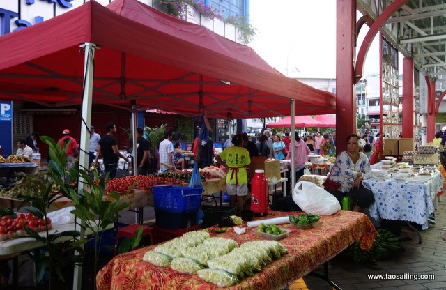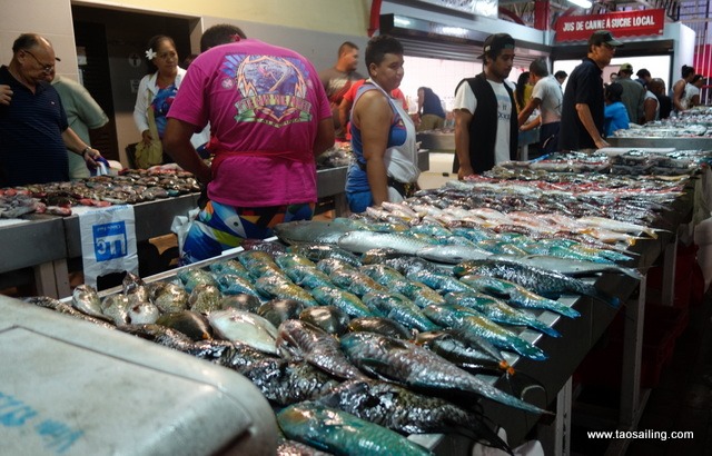 Dès le lendemain avant le lever du jour, nous allons au marché de Papeete avec Noelle (Utopie). Il est 5h30 du matin et déjà la foule s’entasse dans les allées, ![]()