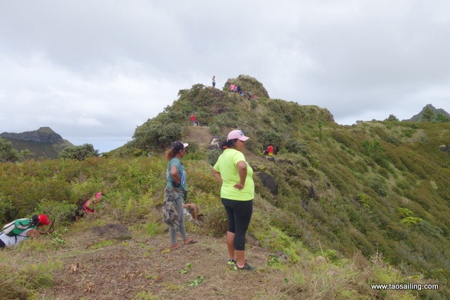 Pour ceux qui ne vont pas pêcher il a été prévu de débrousser le chemin qui mène au fort le plus près du village. Nathalie part sur la crête avec la joyeuse équipe munie d’une machette…![]()
