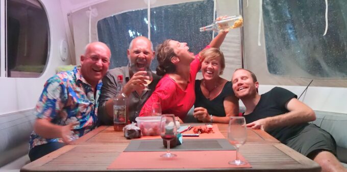 C’est avec les voiliers Terevatua (Charlotte et Pierre) Avatar (Shelly et Mike) Pitufa (Brigitt et Christian) et Paul Photographe que nous fêtons le réveillon de Noël.