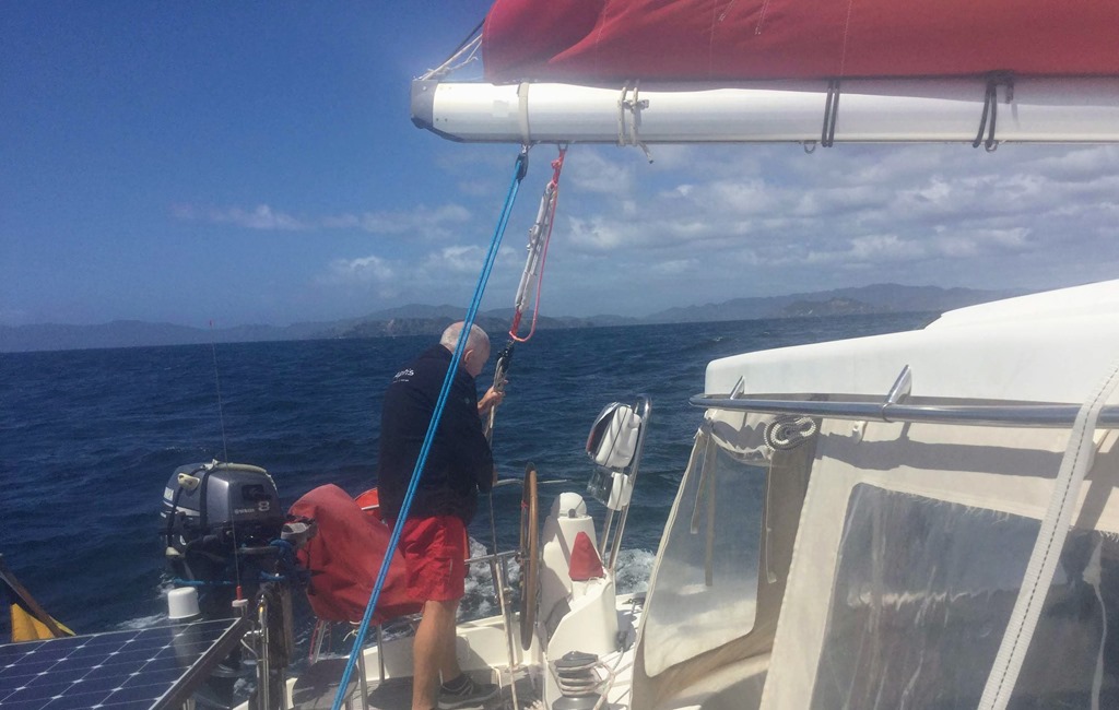 C’est sous un beau soleil printanier que l’île de Northland apparait au loin. Nous prévenons les autorités à la VHF de notre arrivée prochaine au port d’entrée de Opua.![]()