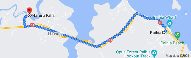 En attendant des jours meilleurs, nous allons jusqu’aux chutes de Haruru à 6kms de Paihia. ![]()