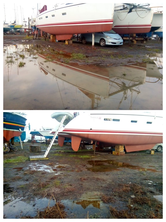 Le confinement est terminé nous retournons à whangarei vérifier l’état du bateau qui est au chantier depuis plusieurs mois. Tao est au beau milieu d’un “marécage”et d’un champ de boue! Nous demandons à changer d’emplacement afin de pouvoir revenir bricoler sur du “sec”! ![]()