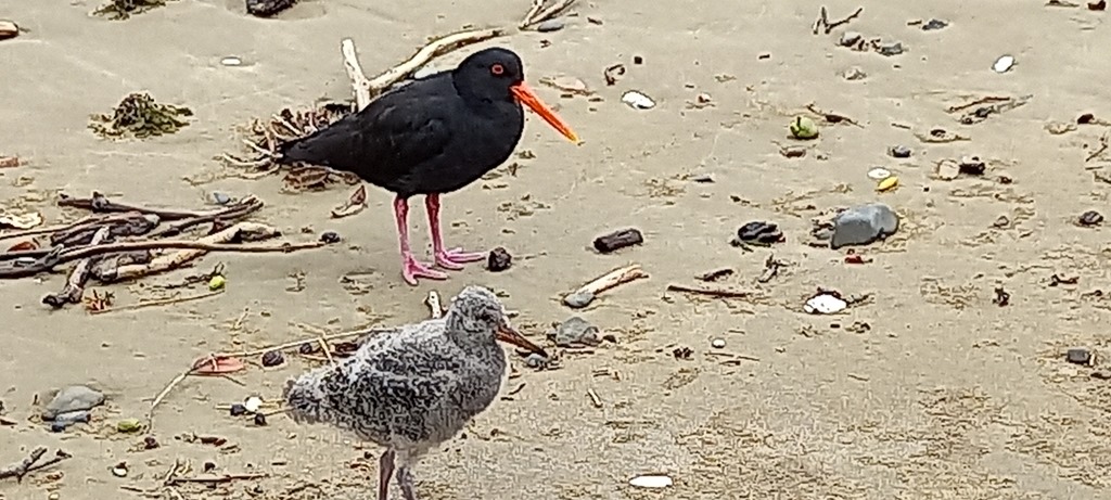 Oyster catcher avec son petit qui ne sont pas apeurés par notre présence. ![]()