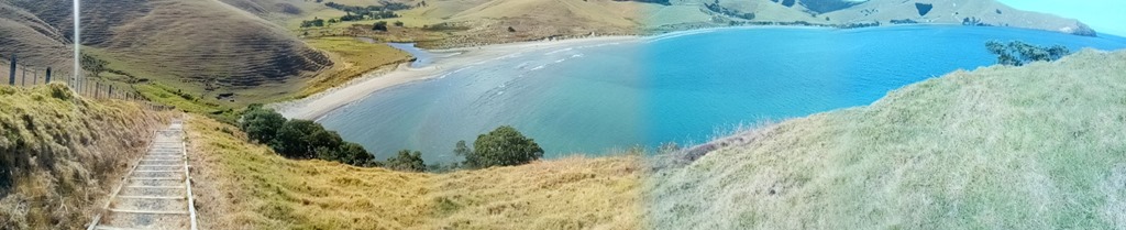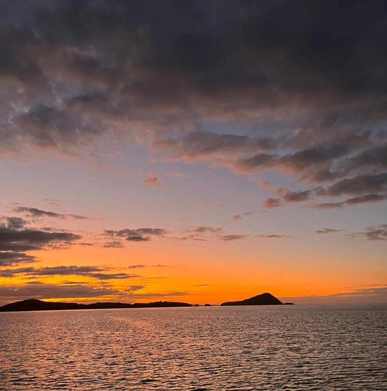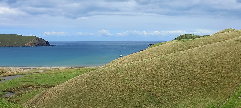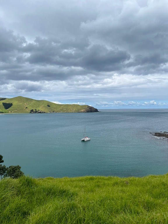 En quelques heures nous arrivons à Port Jackson à la pointe nord de l’île. Par chance il n’y a pas de houle venant de l’est nous pouvons mouiller de ce côté de la péninsule. Le sentier côtier de Muriwai long de 4kms offre de magnifiques points de vue on se croirait au bout du monde… Lors de l’un de nos “Road trip” en Février 2020 nous avions adoré cette côte très sauvage et les couchers de soleil. ![]()