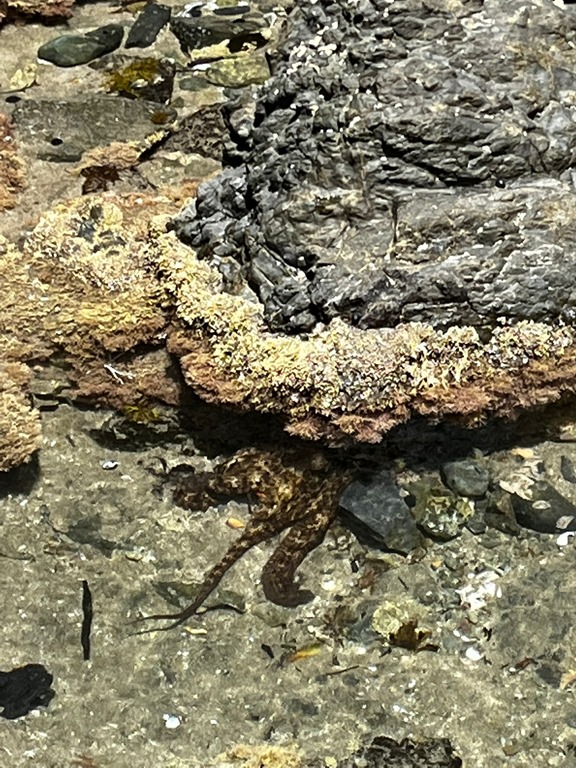 Un poulpe a tout juste le temps de rentrer à moitié dans sa cachette. ![]()