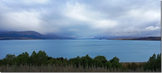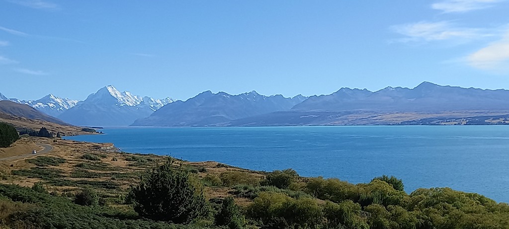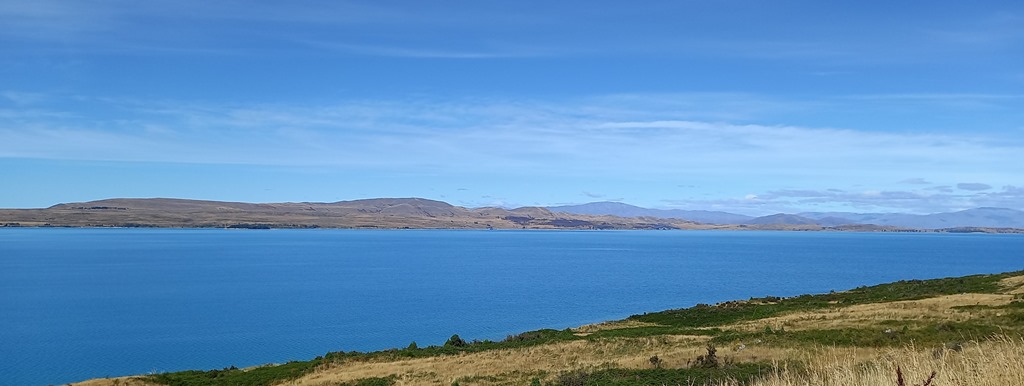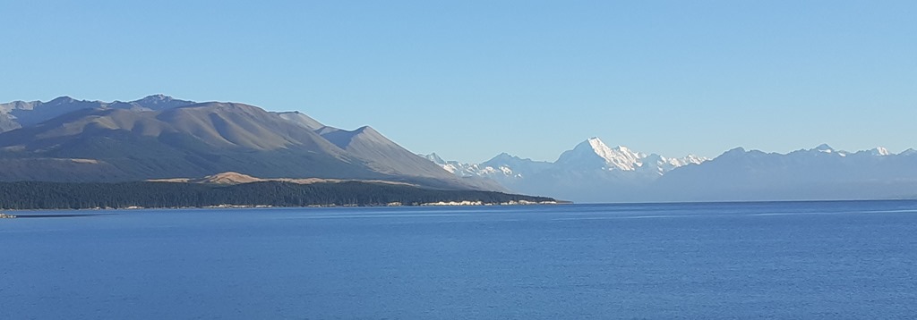 Tous les jours la couleur du lac Pukaki (long de 30 kms) varie en fonction de l’ensoleillement. Il peut être d’un turquoise surnaturel dû à des minéraux en suspension qui proviennent des glaciers et vallées en amont du Mont Cook. Ces minéraux sont ensuite transportés par la rivière Hooker et Tasman sur plus de 20 kms jusqu’au lac. Quotidiennement nous ne nous lassons pas d’admirer la beauté des paysages. ![]()