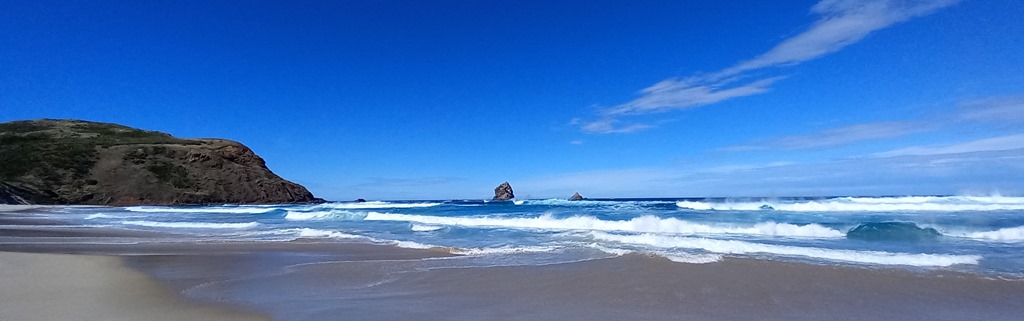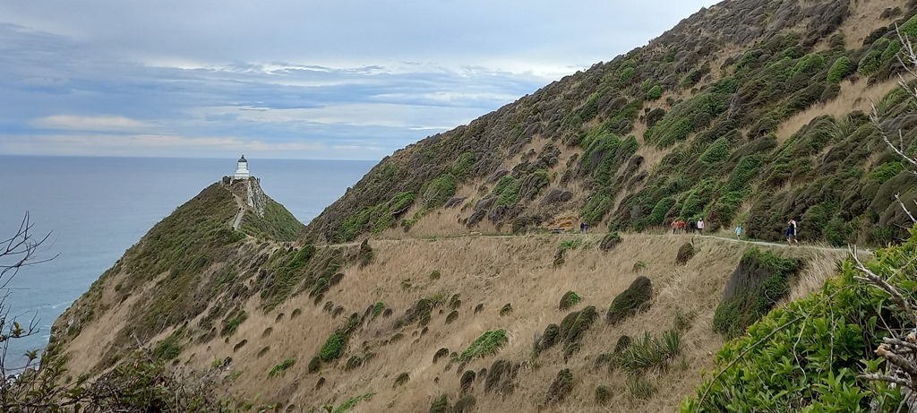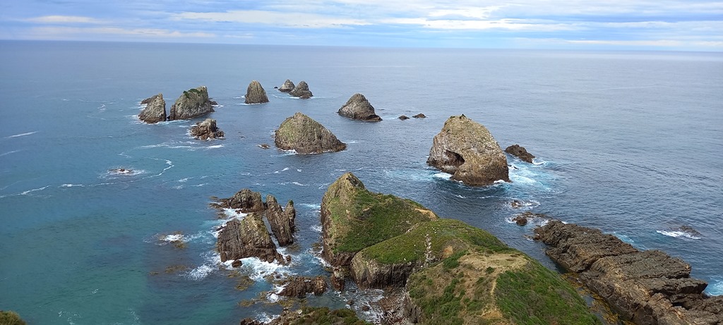Petite promenade à l’extrême nord des Catlins jusqu’au phare. Le Promontoire qui surplombe l’océan est vertigineux avec les rochers au large.