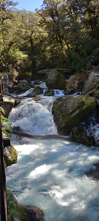 Situé en bordure du parc National de Fjordland nous ne nous attardons pas car il fait un froid de canard nous obligeant à finir notre déjeuner dans la voiture!