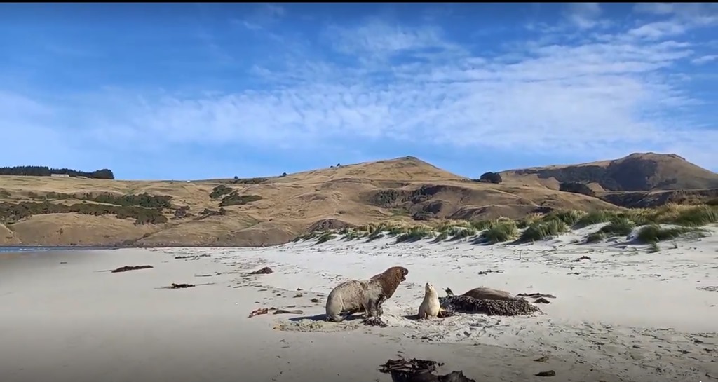 C’est dans la bay de Wickliffe sur la plage de Victory que nous observons des lions de mer affalés sur le sable.