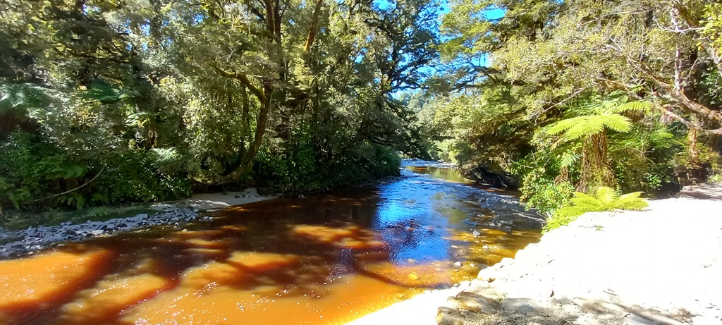 La couleur “whisky” de la rivière Oparara est due à la présence de tanins naturels rejetés par la décomposition des végétaux. ![]()