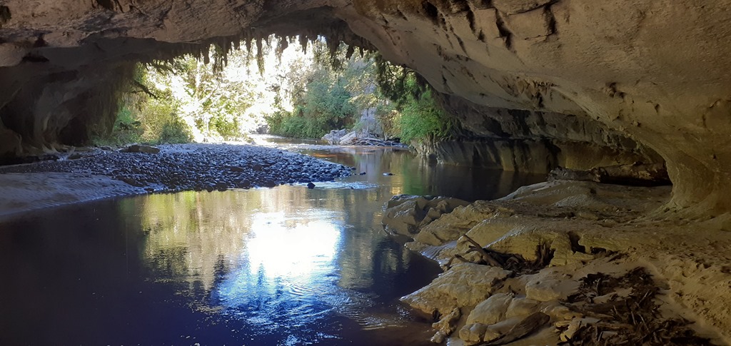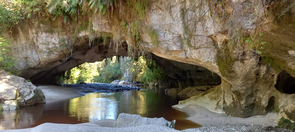 Nous poussons notre curiosité jusqu’aux arches du bassin d’Oparara qui sont des tunnels de calcaire formés par la rivière Oparara. Nous visitons les trois sites non loin les uns des autres.