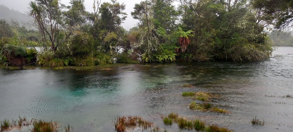 Nous louons un Airbnb dans la région de Takaka (pointe nord ouest) en prévision des randonnées que nous voulons faire le long de la côte. Même si la pluie persiste nous allons jusqu’à la rivière sacrée de Waikoropupu où selon une croyance Maori il est interdit d’être en contact avec l’eau de la rivière.
