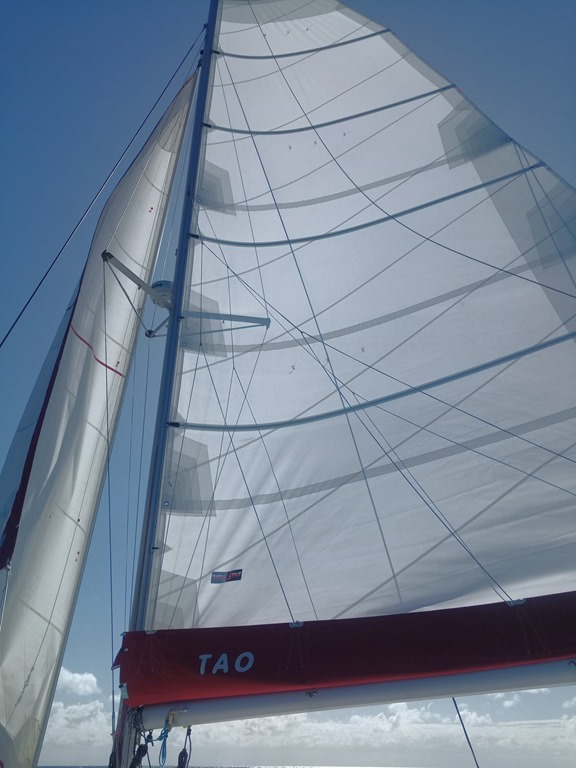 Nous retrouvons notre QG la Bay of Island car nous devons récupérer notre nouvelle voile à la marina de Kerikeri. En quelques heures l’équipe de “Willis Sails” nous installe la grand voile qui s’ajuste parfaitement le long du mât. Elle a “fière allure” comparée à l’ancienne qui était en “fin de vie”!![]()