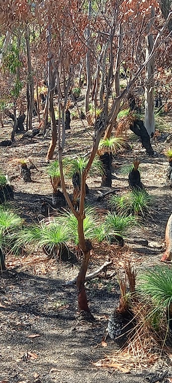 Le chemin de randonnée traverse une forêt assez dense. Les eucalyptus et les arbres “Australian grass” bordent le début du sentier. Ces arbres endémiques poussent le long des côtes sur des sols pauvres. Leurs feuilles sont inflammables et leurs troncs peuvent résister au feu.
